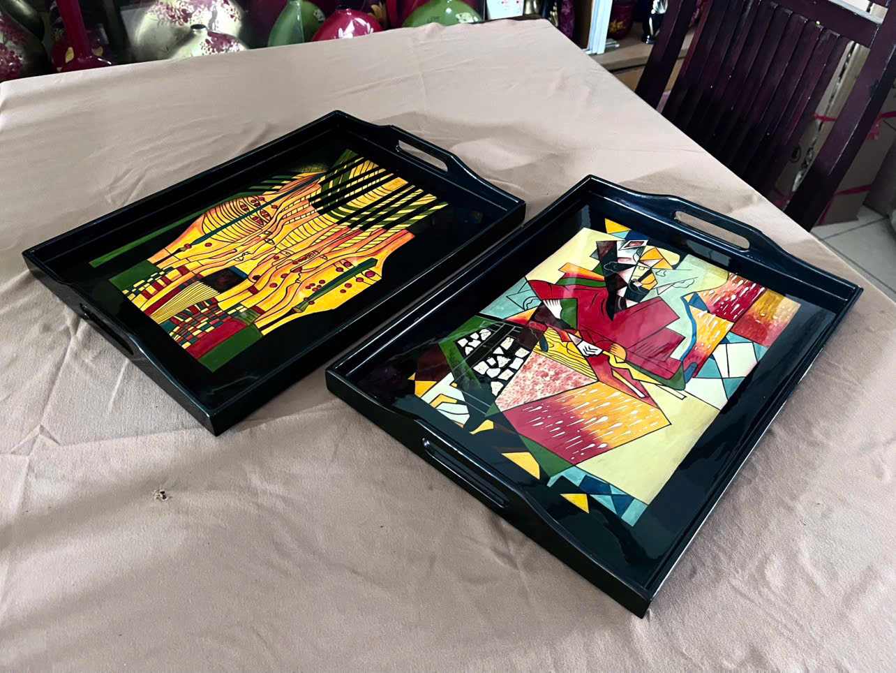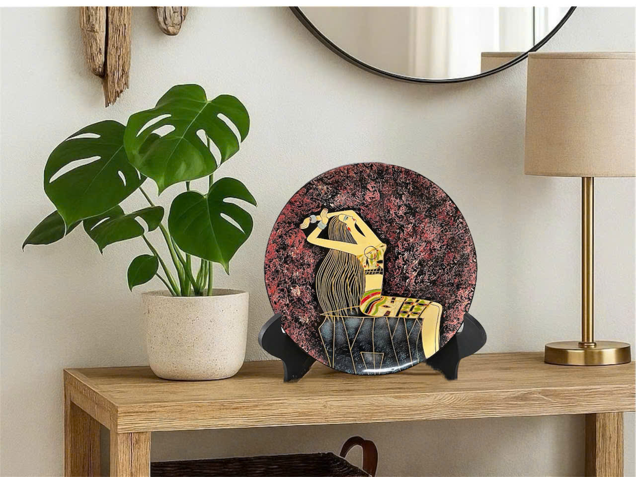 Tranh dĩa sơn mài – Họa tiết Cô Gái Cách Điệu – Size 25 cm