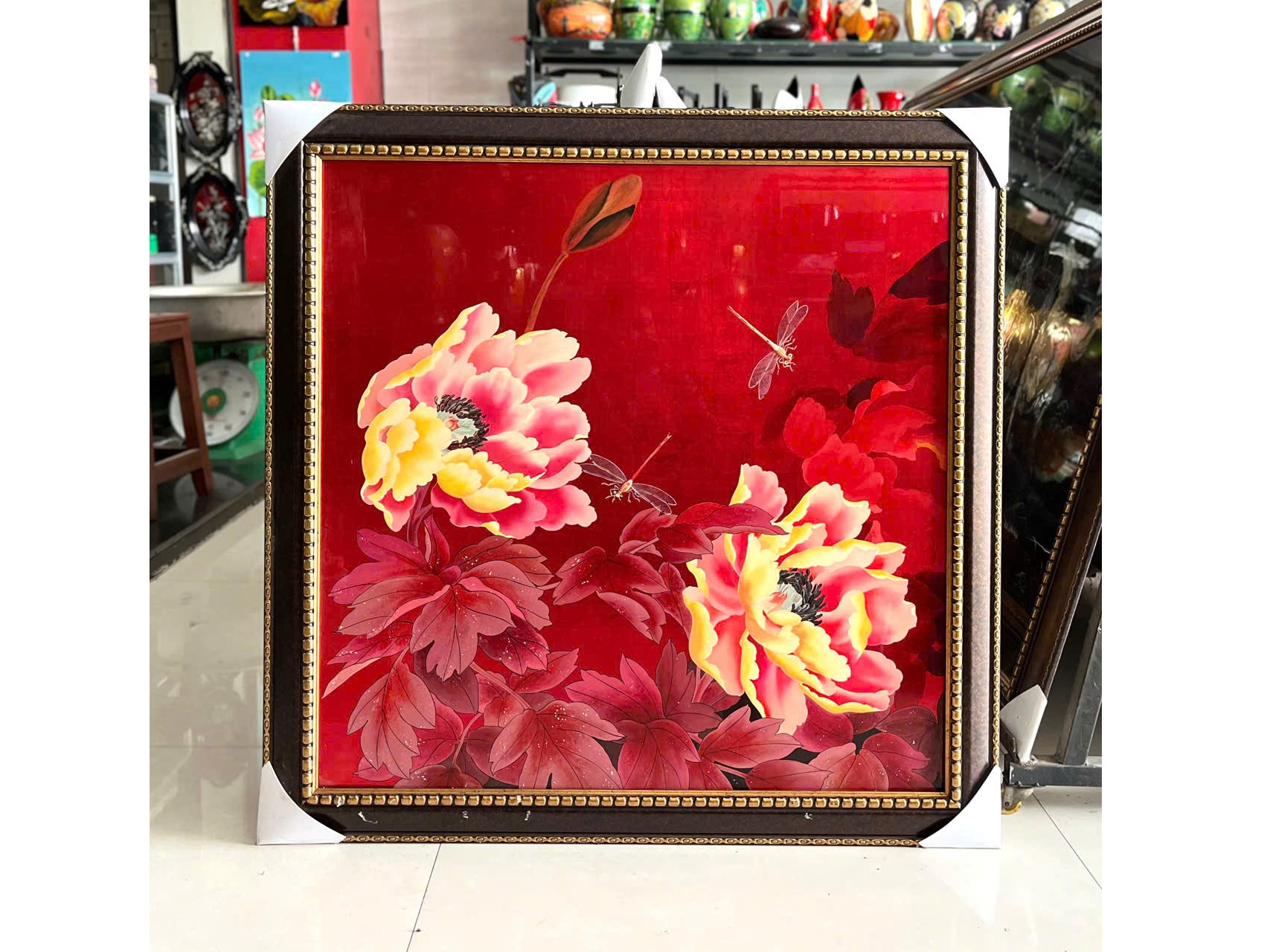 ✨ Tranh Sơn Mài – Hoa Mẫu Đơn – Size 94×94 cm – Kèm Khung Cao Cấp ✨
