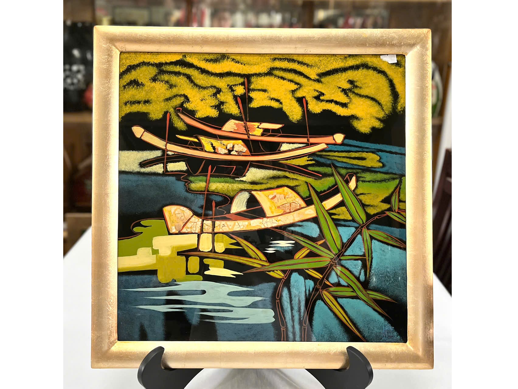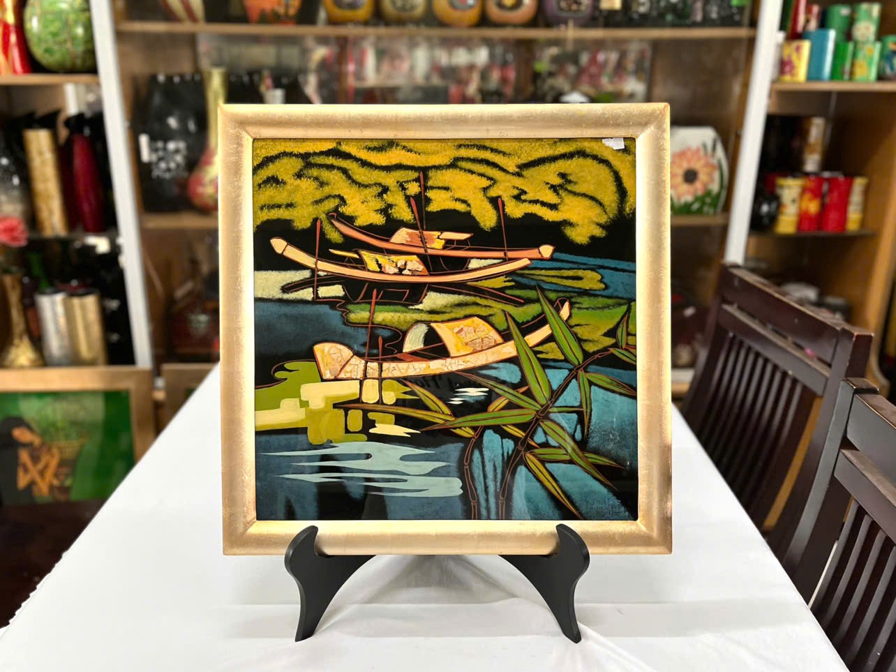 ⛵ Tranh Sơn Mài Thuyền Về Bến – Size 45×45 cm | Khung Sơn Mài Dát Vàng Cao Cấp