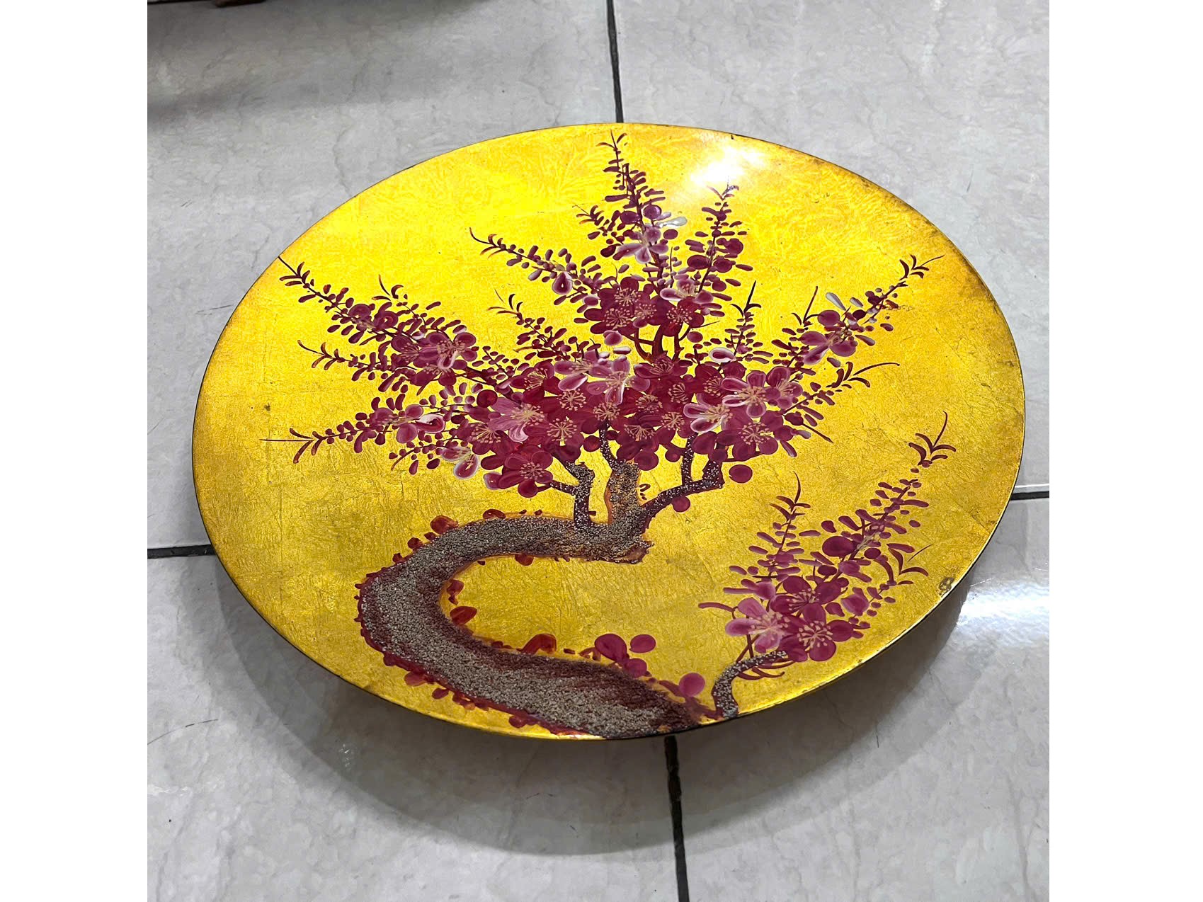 Tranh dĩa sơn mài – HOA ĐÀO- Nền dát vàng/ bạc cao cấp