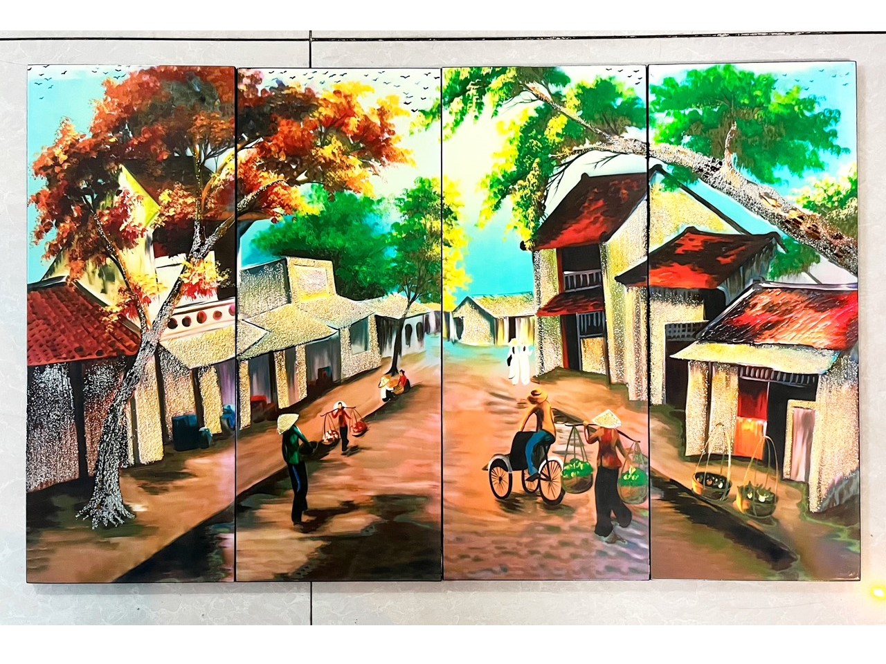 Bộ Tranh sơn mài 4 tấm – Đồng Quê / Phố Cổ size 50×80 cm hàng xuất khẩu