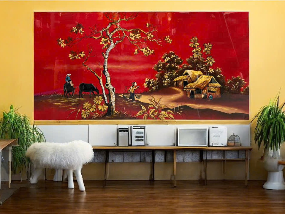 Tranh sơn mài – Đồng Quê size 80×140 cm / Hàng xuất khẩu- cao cấp