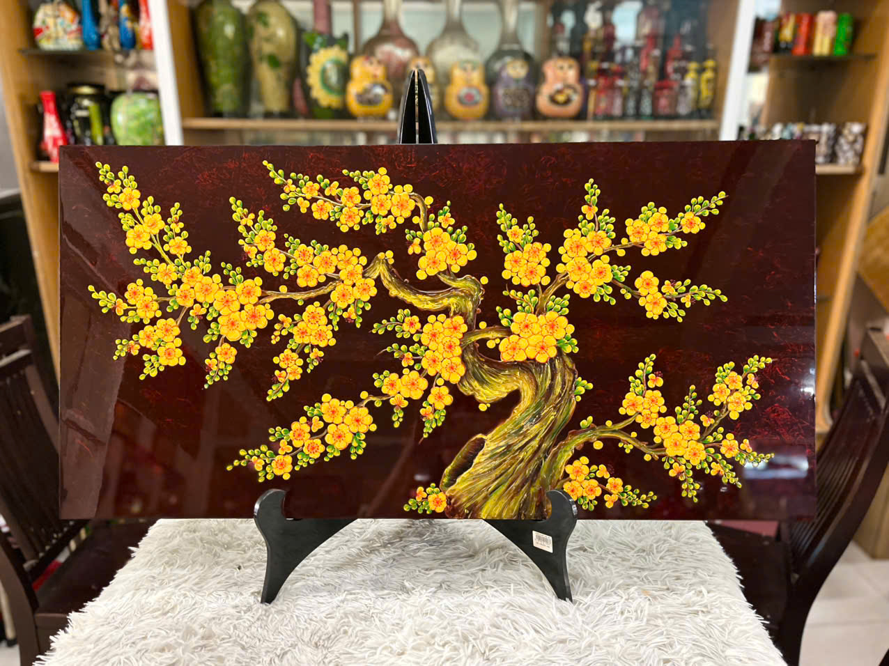 🌸 Tranh Sơn Mài – Hoa Mai Size 50×100 cm | Tặng Kèm khung