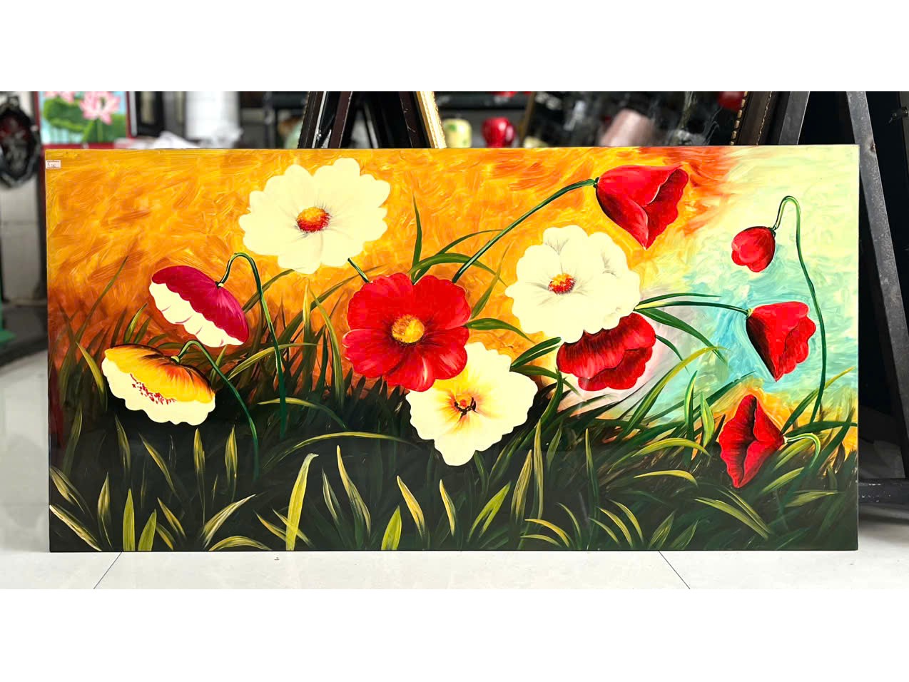 🌸 Tranh Sơn Mài – Hoa POPPY Size 60×120 cm | Tặng Kèm khung
