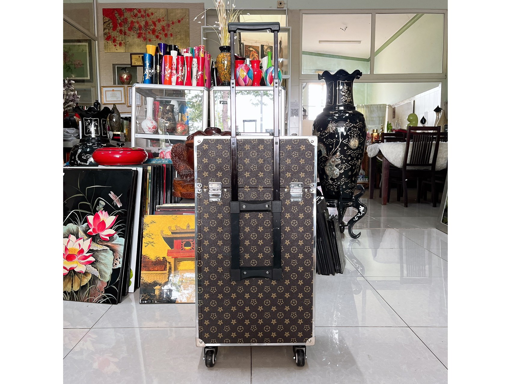 Cốp sơn mài cao cấp dát vàng cẩn vỏ trứng, họa tiết vẽ tay cao cấp, viền khung nhôm chắc chắn, bọc góc inox size 40x20x26 cm