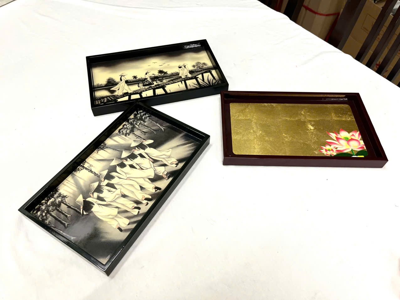 – LƯU Ý: Shop giao mẫu ngẫu nhiên, khách hàng muốn lựa chọn mẫu vui lòng nhắn tin riêng cho shop nhé ạ. Khay được làm từ chất liệu gỗ tự nhiên sơn mài vẽ tỉ mỉ, độc đáo, họa tiết phong phú