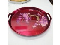 Khay được làm từ chất liệu gỗ tự nhiên sơn mài vẽ tỉ mỉ, độc đáo, họa tiết phong phú