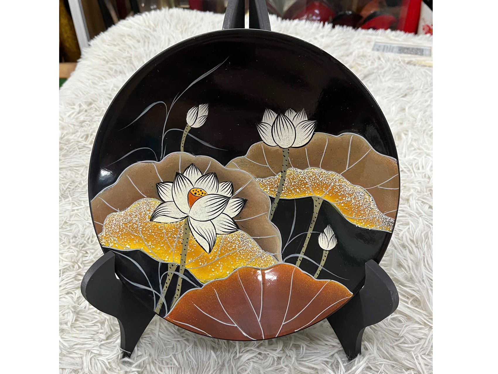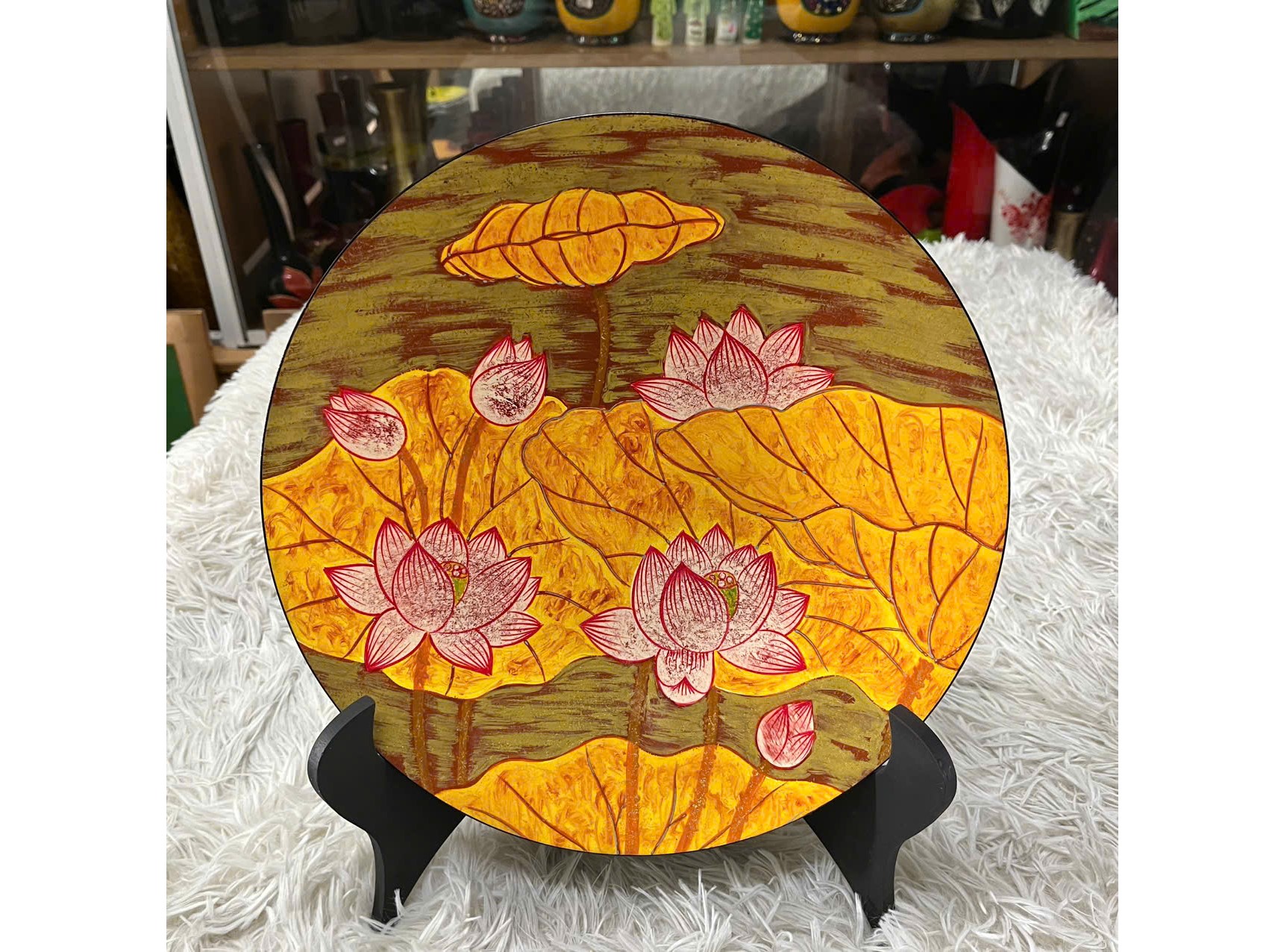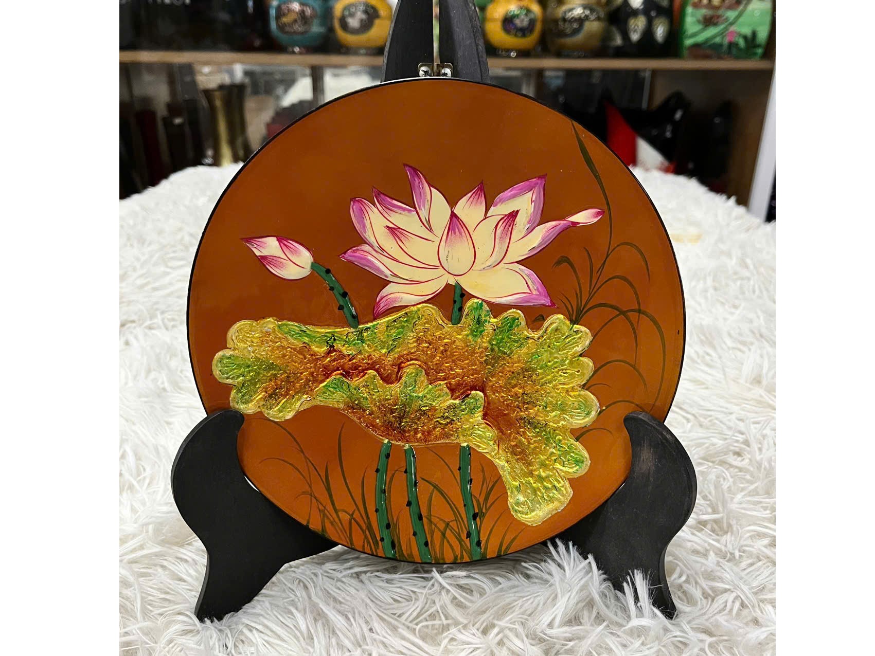 ( Tặng kèm chân dĩa) Tranh dĩa sơn mài Hoa Sen cao cấp