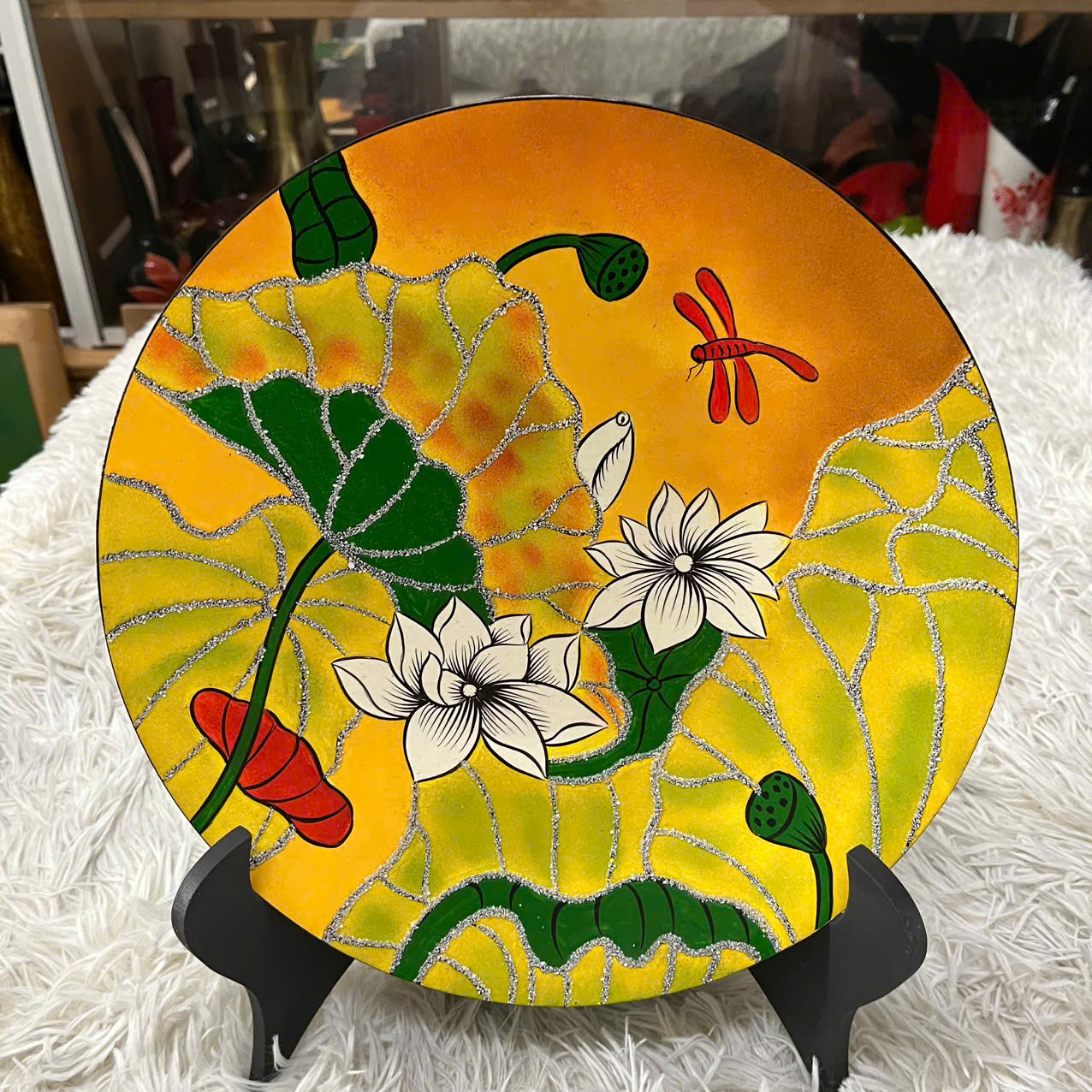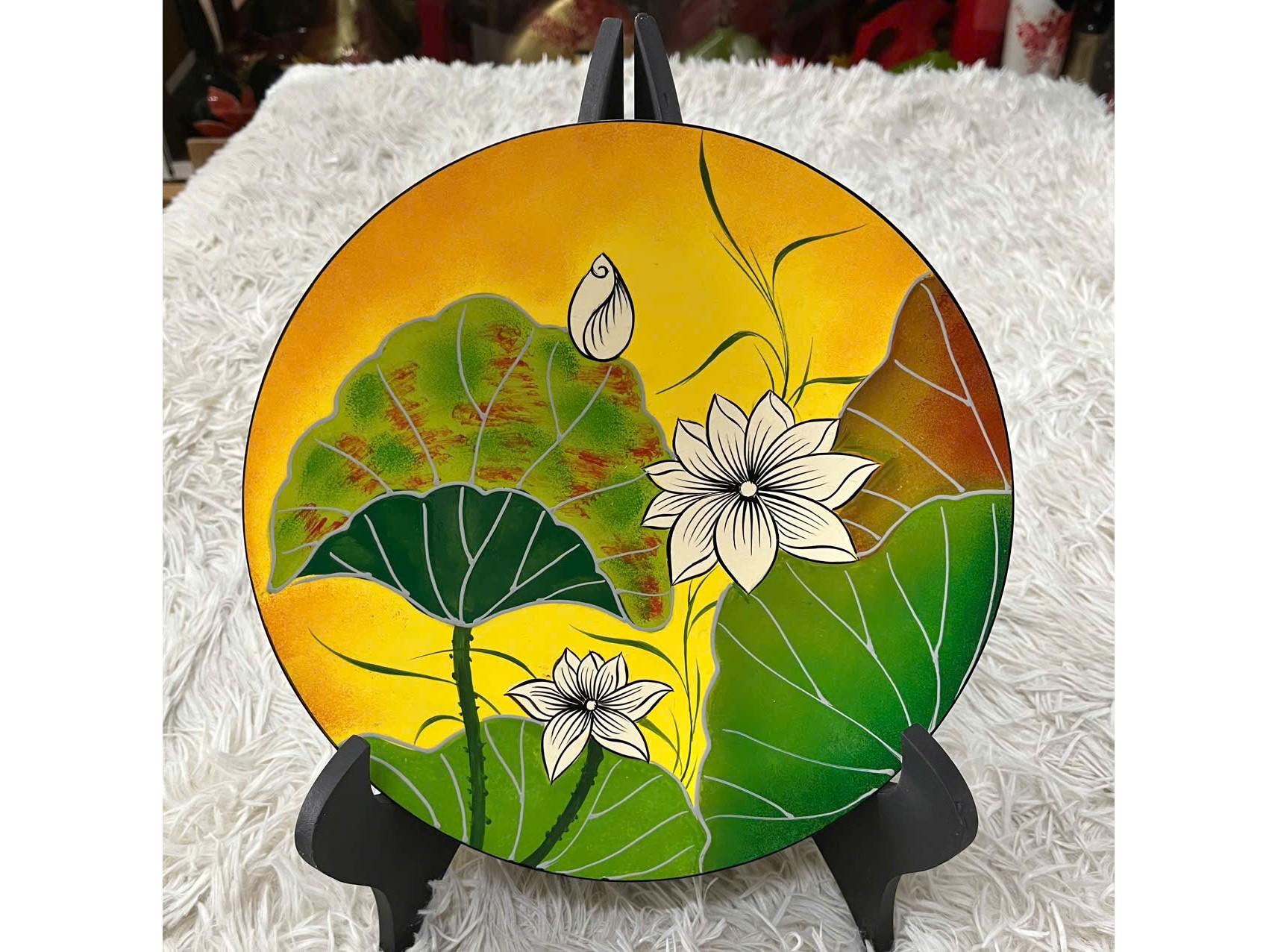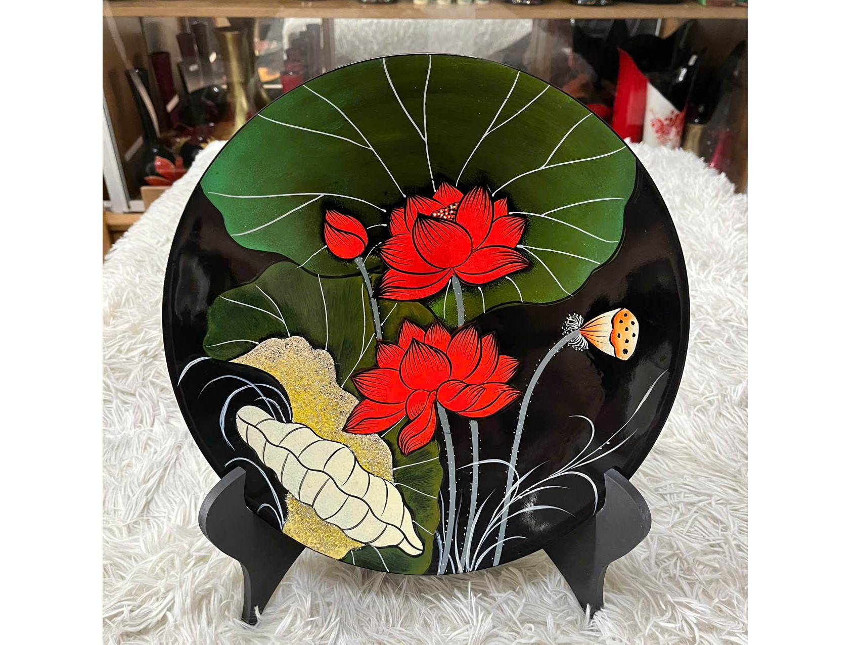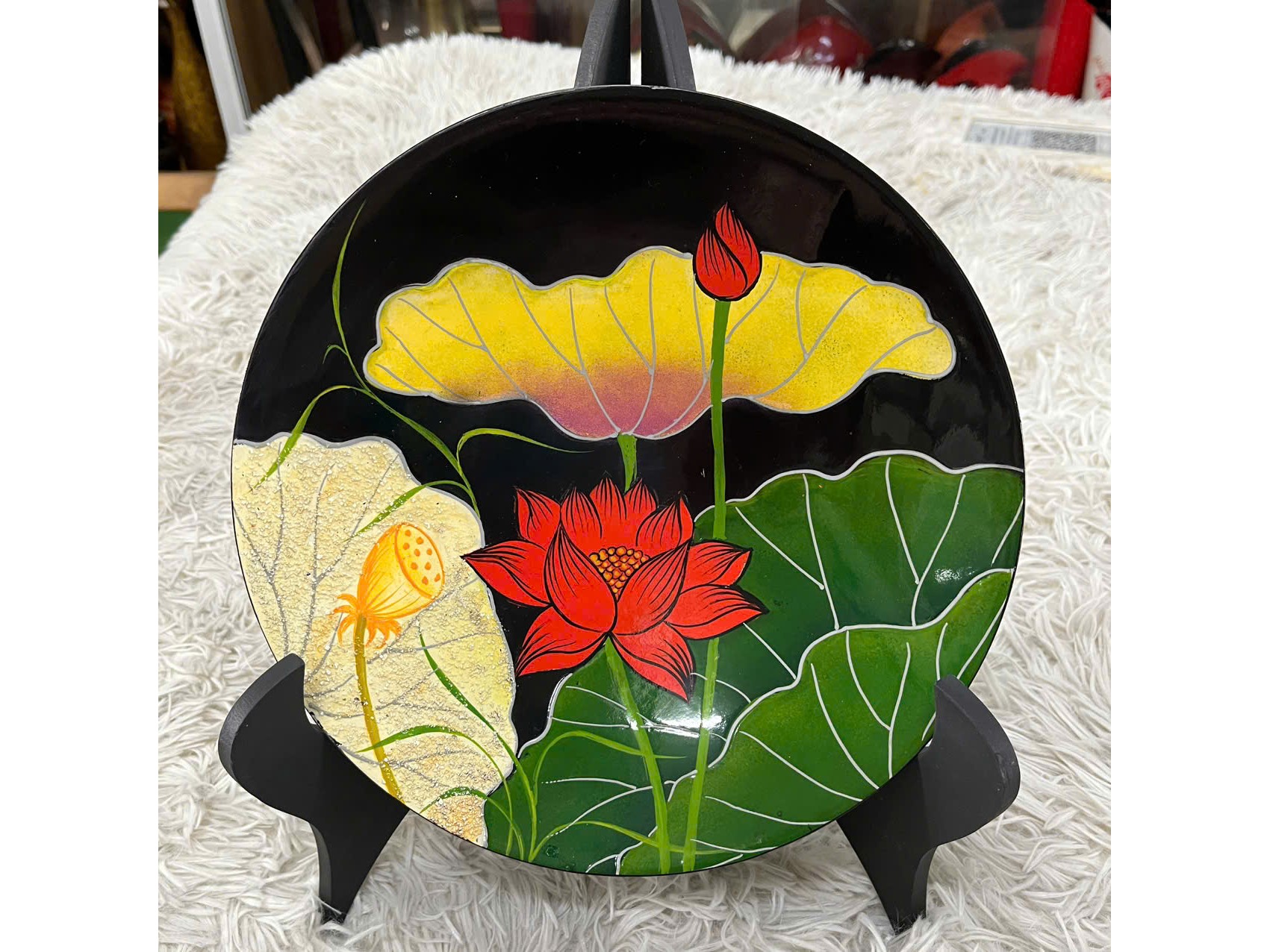 ( Tặng kèm chân dĩa) Tranh dĩa sơn mài Hoa Sen cao cấp