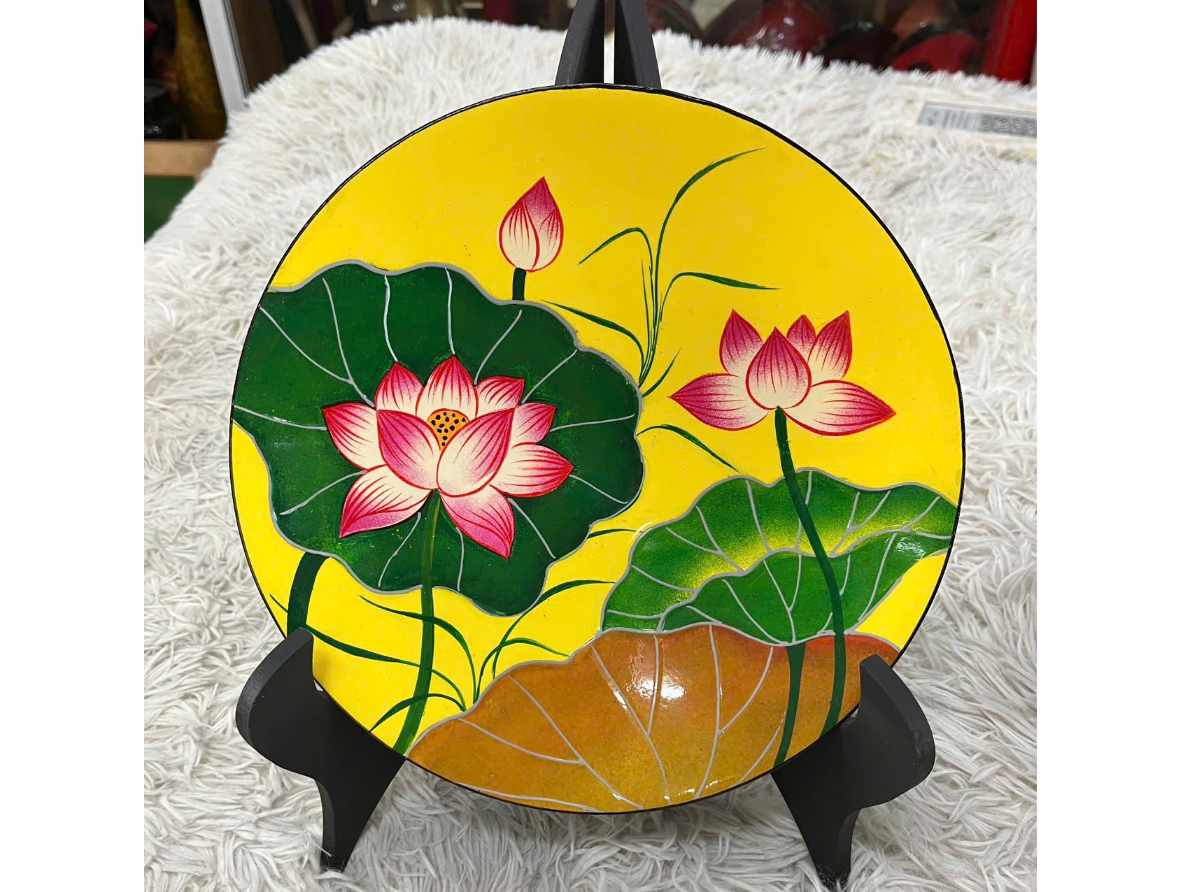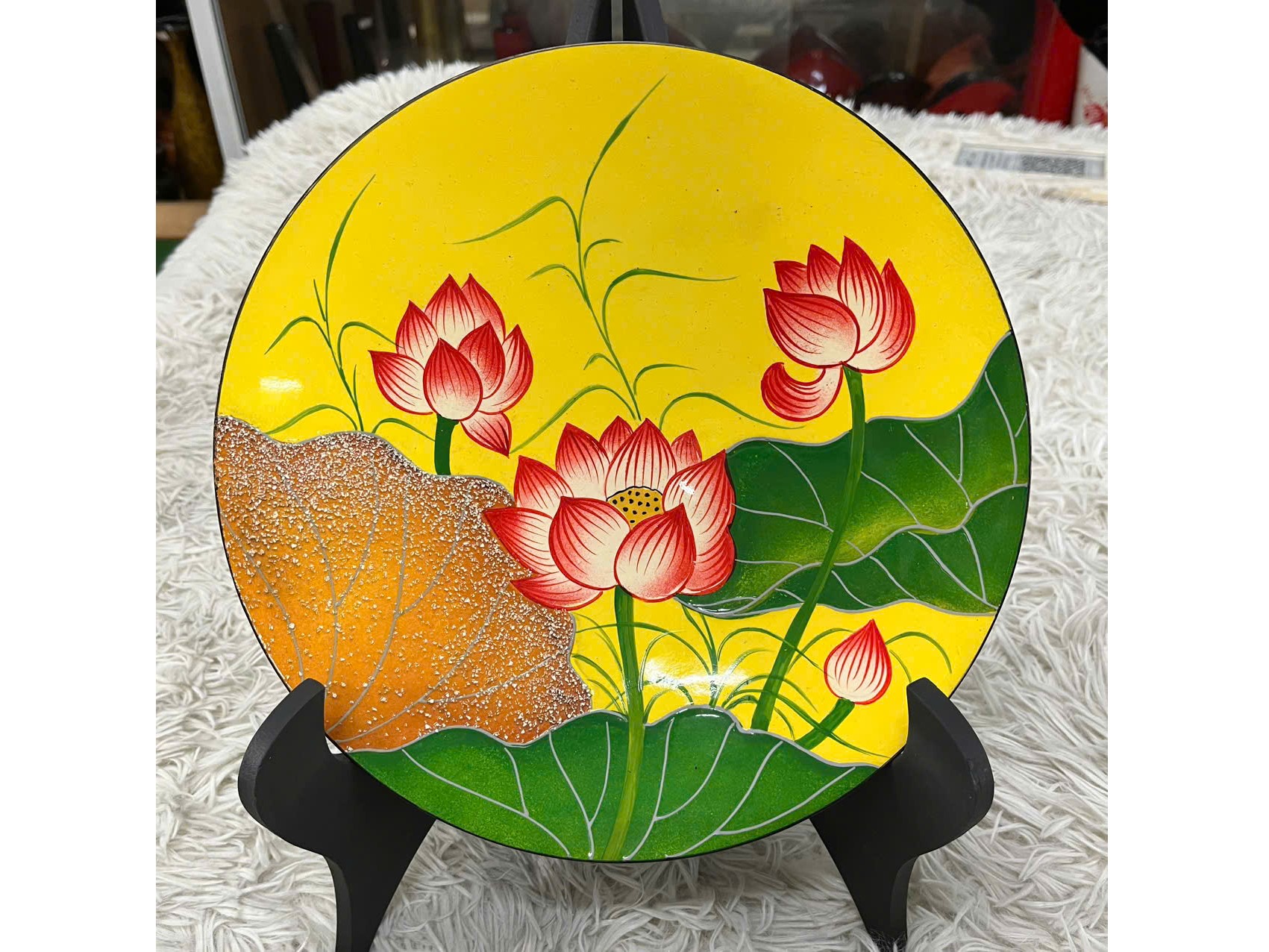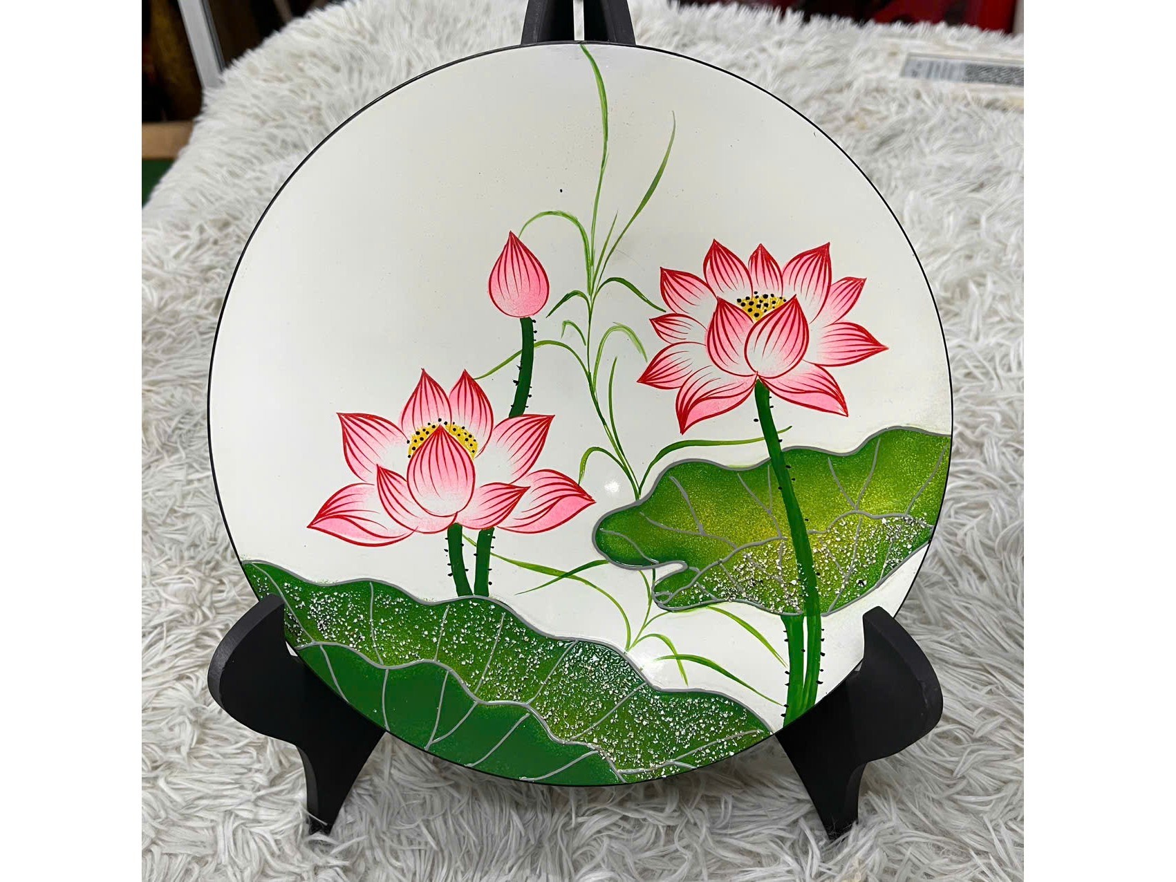🌸 TRANH DĨA SƠN MÀI HOA SEN CAO CẤP – TẶNG KÈM CHÂN DĨA 🌸