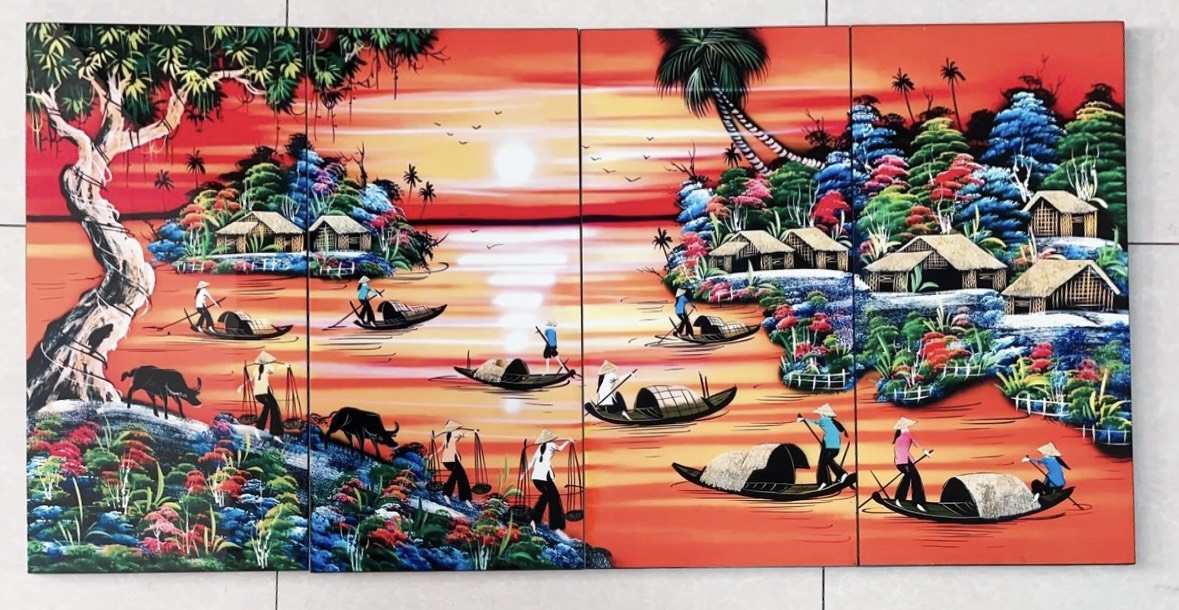 Chất liệu sơn mài giúp bức tranh có độ bóng đẹp, bền màu theo thời gian. Những chi tiết tinh tế như ánh sáng phản chiếu hay sự tương phản giữa các màu sắc cũng khiến cho tranh sơn mài trở nên nổi bật và thu hút. Nếu bạn có nhu cầu cụ thể nào về tranh sơn mài đồng quê, mình có thể giúp bạn tìm hiểu thêm!