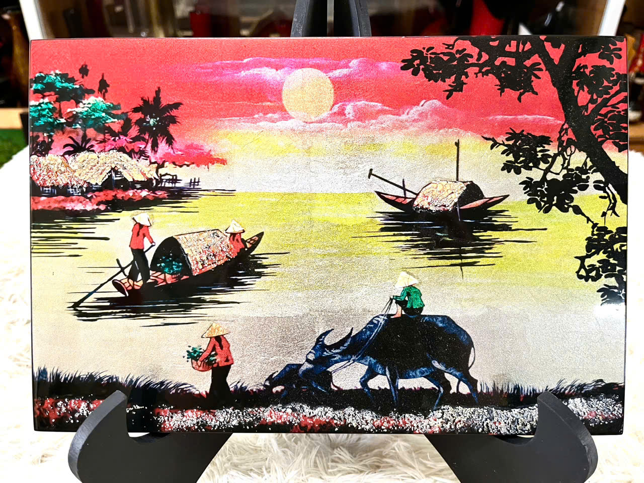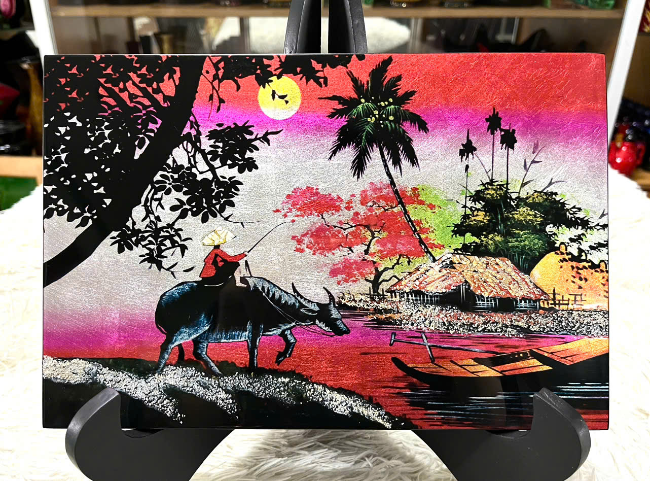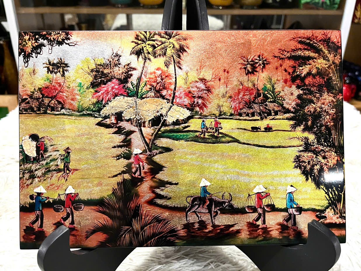 Tái hiện khung cảnh làng quê Việt Nam yên bình, giản dị qua chất liệu sơn mài truyền thống, tranh sơn mài Đồng Quê Việt Nam size 20×30 cm là lựa chọn lý tưởng để trang trí không gian sống hoặc làm quà tặng mang đậm dấu ấn văn hóa Việt.