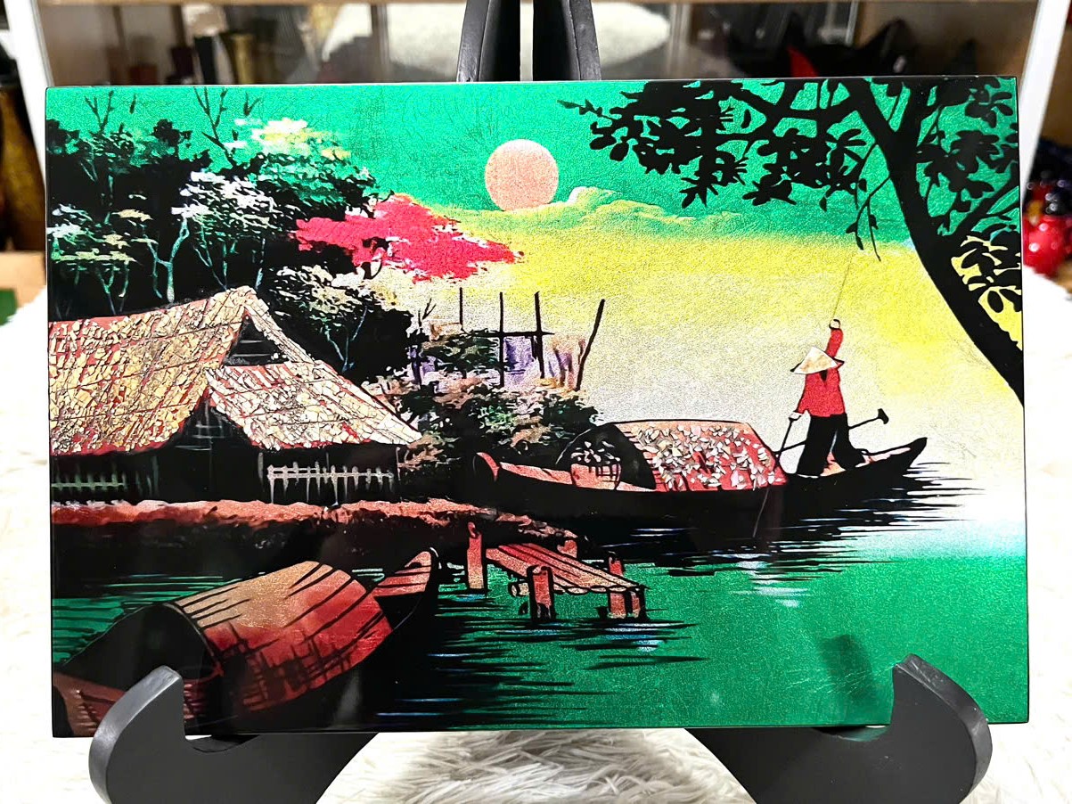 • Kỹ thuật sơn mài truyền thống: Mỗi bức tranh đều được chế tác qua nhiều lớp sơn, mài, đánh bóng thủ công tỉ mỉ
