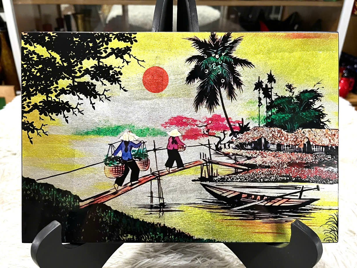 ////Tranh sơn mài – Đồng Quê Việt Nam size 20×30 cm – Nền dát vàng/ bạc cao cấp